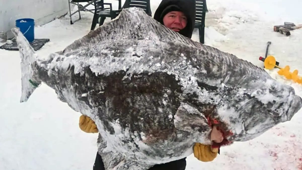Angler Lands Record Atlantic Halibut Through Ice for Science